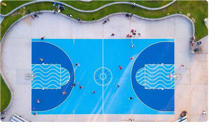 硅PU球場擁有專為運動設計的彈性結構,通過彈性層回縮瞬間吸收硬直沖擊力,達到緩沖效果;同時再經(jīng)過加強層形成向上的軟性高回彈力,恢復良好的運動助力。這種運動彈性結構,能有效地緩減地面對腳踝、關節(jié)、韌帶的反作用力所造成的運動傷害。