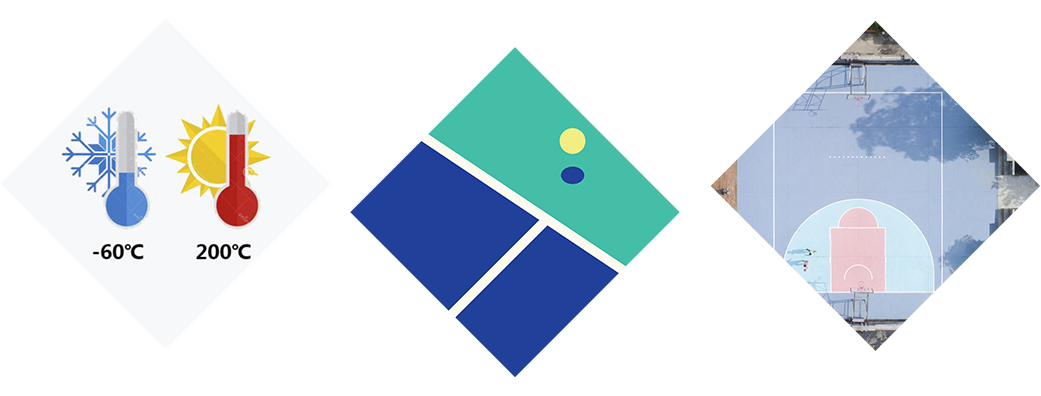 硅PU材料具有優(yōu)秀的化學惰性,在耐熱耐寒方面表現(xiàn)出色,它在-60~200℃范圍內可以長期保持彈性,Dynice長期的實踐證明,硅PU材料球場可以充分適應高寒酷暑等溫差較大的地區(qū)。